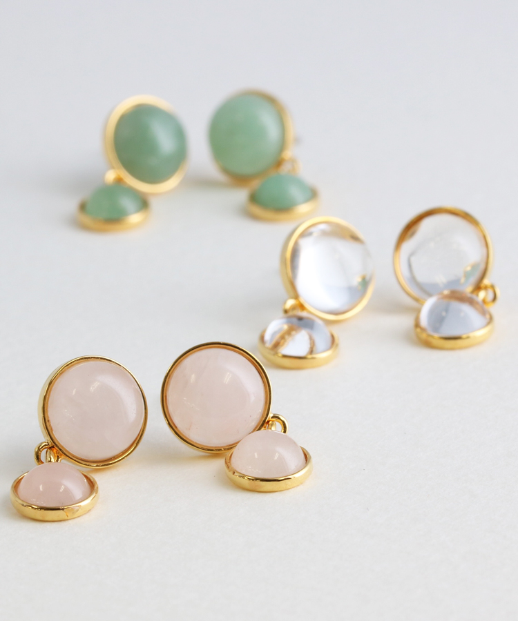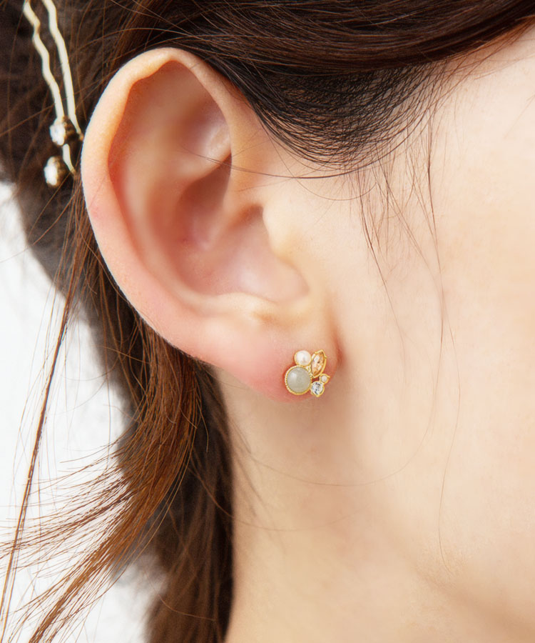 ナチュラルストーンとビジューのチタンポストピアス【MUK Dreamy stone】(\1,760)