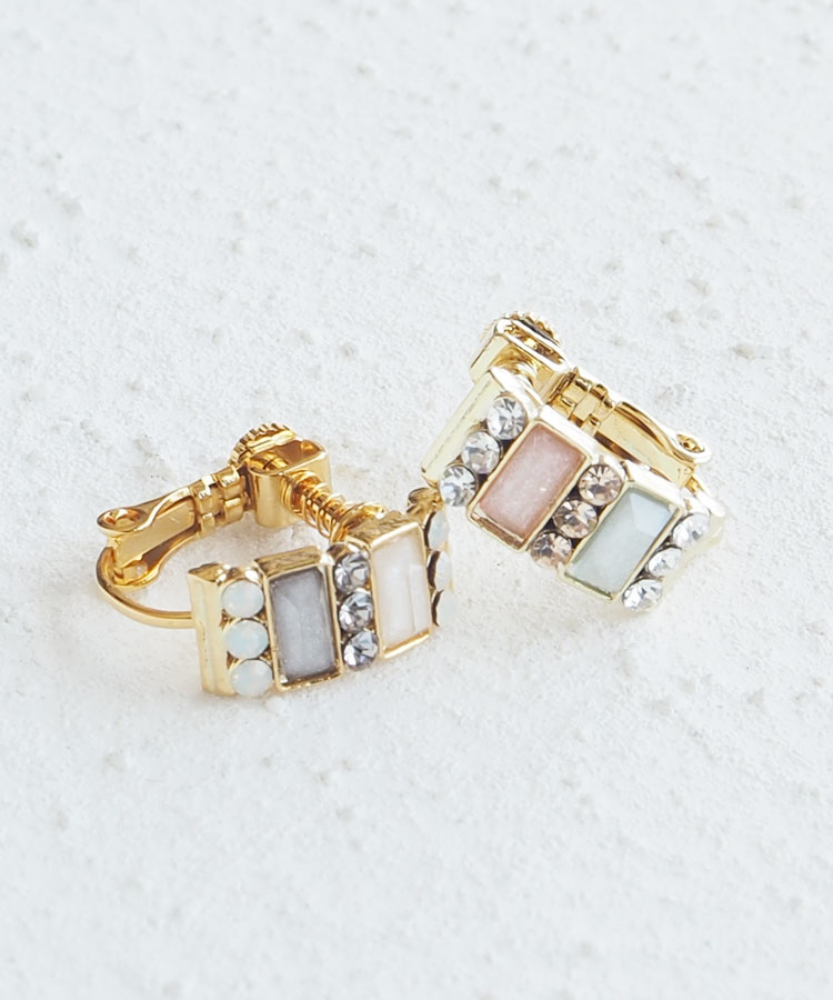 [ツートンストーンIMFスプリングイヤリング ピンク×ブルー]