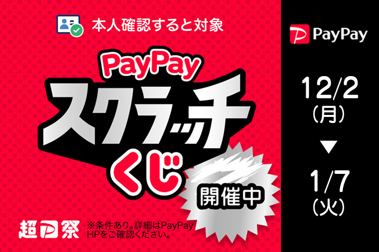 【PayPay】最大100%戻ってくる!スクラッチくじ(12/1-12/28)