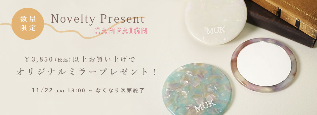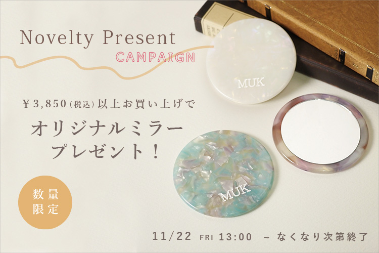 日頃の感謝を込めて、直営店とMUK ONLINE SHOP公式店にてノベルティプレゼントキャンペーンを開催中!