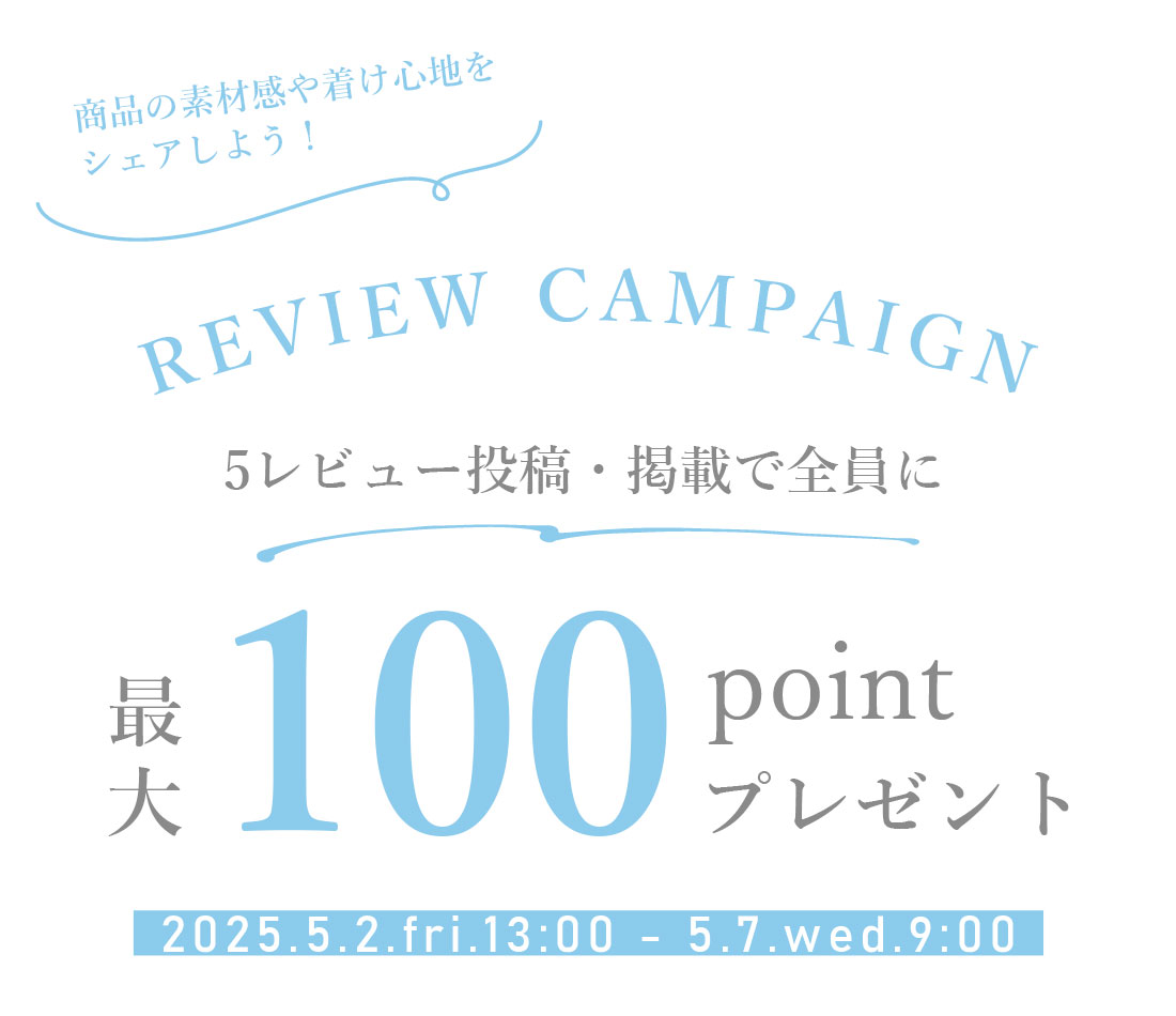 通常1レビューにつき5ポイントのプレゼントに加え、期間中に5レビュー以上投稿・掲載された会員様全員に、100ポイント(期間限定)をプレゼントさせていただきます!