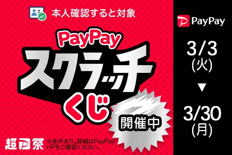 2026年3月3日(火)から3月30日(月)まで、PayPayスクラッチくじが開催されます!