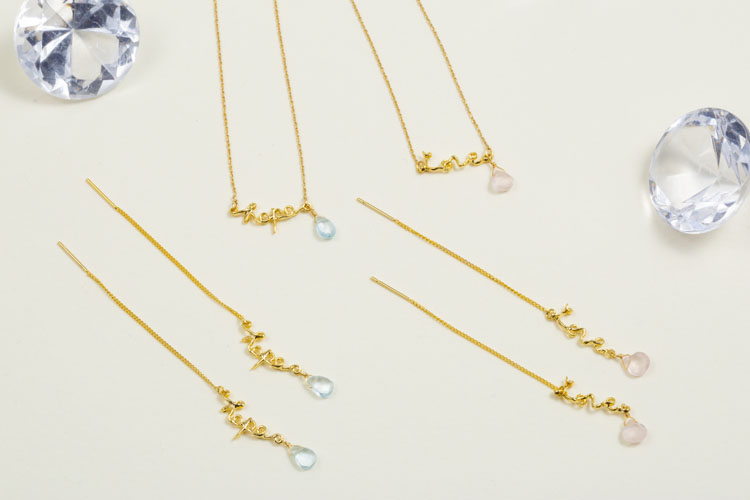筆記体の流れるラインと透明感のある天然石が上質なアイテムです。