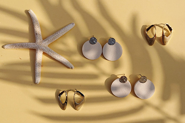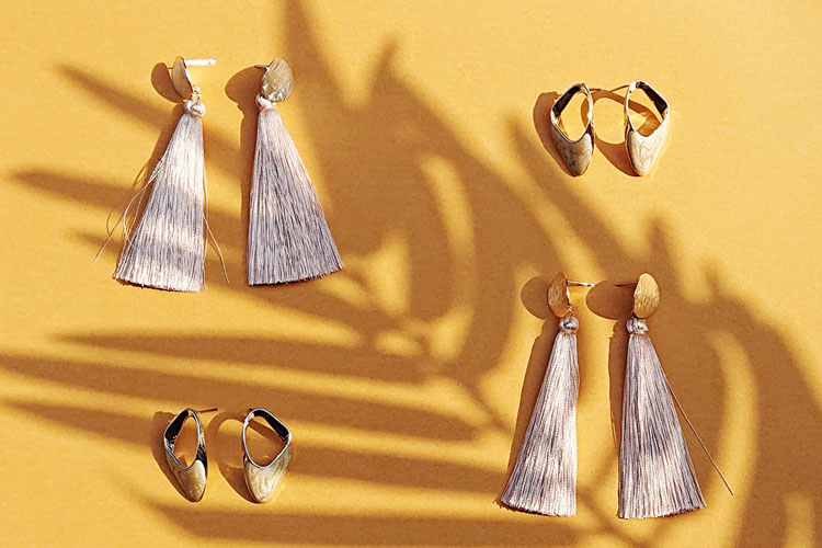 主役のメタルにベージュカラーのレザーやフリンジを組み合わせ今っぽさを演出しました