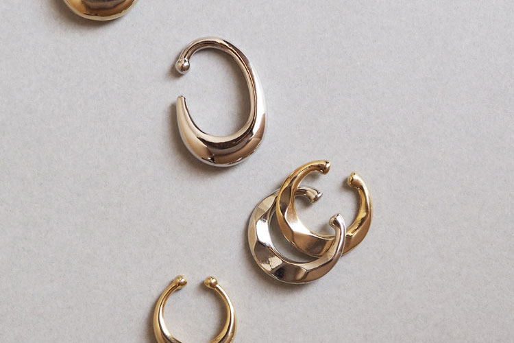 トレンドのイヤカフのNEWタイプはモードな抜け感を感じさせる、大きめのメタルと変形デザイン