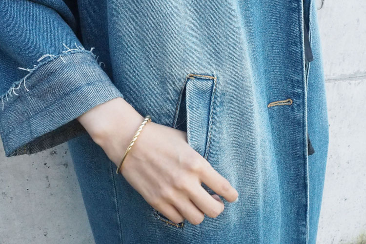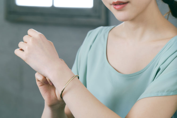 メタルラインのマグネットバングル。忙しい朝にも片手でカチッとスマートに身に着けられます。