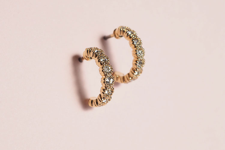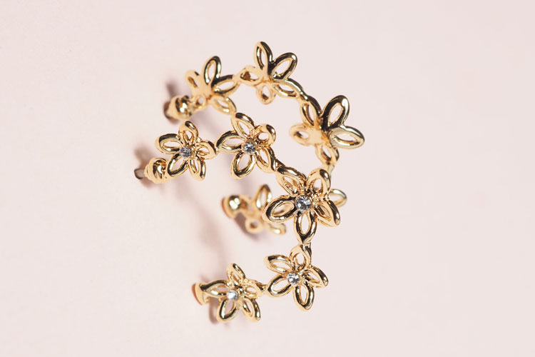 新作は大好きなフラワーやハートが女心をくすぐるフープピアスです。肌なじみの良いピンクゴールドカラーでますます可愛らしい印象に。