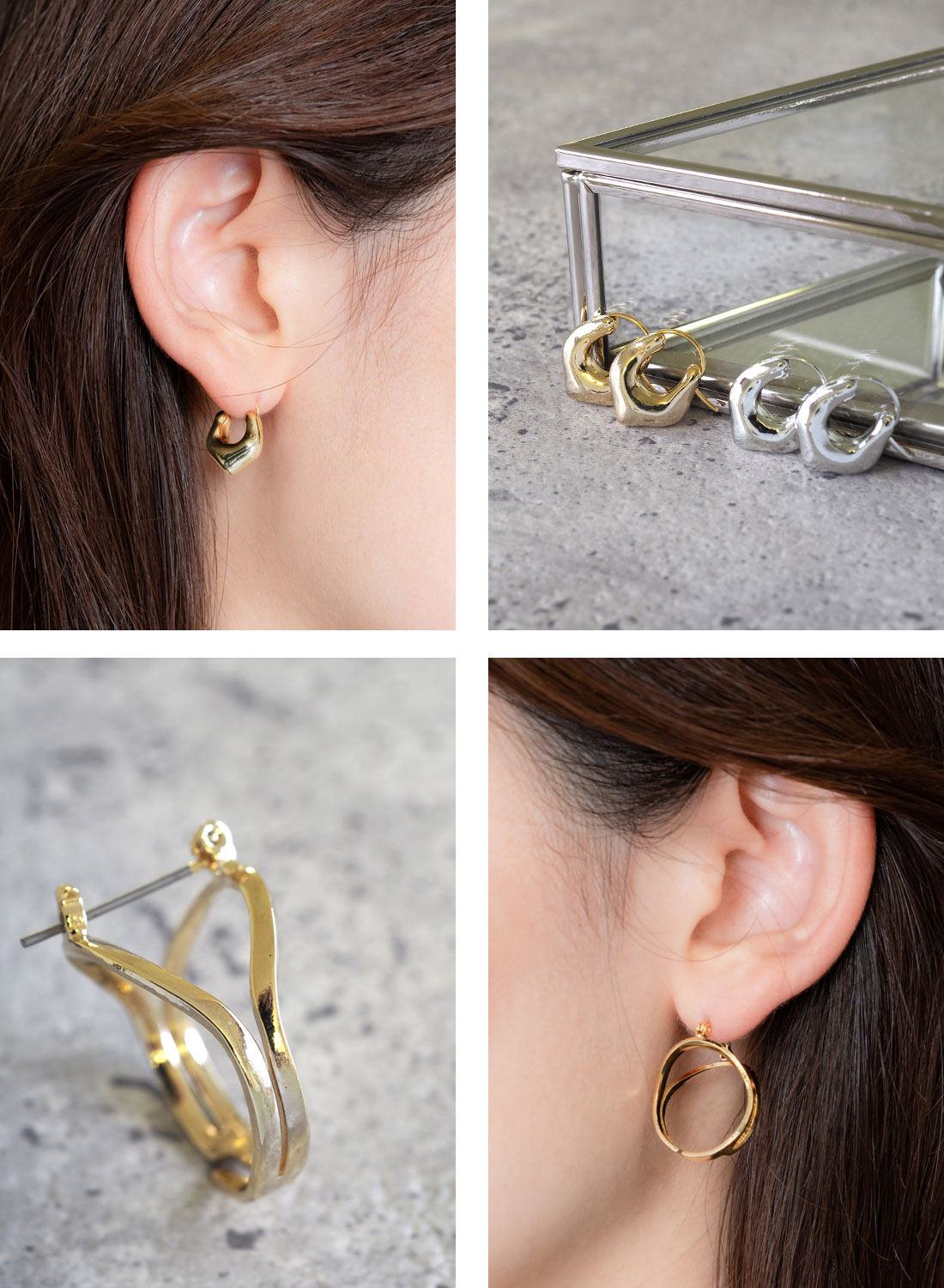 一癖デザインフープの印象的なワンタッチピアスをラインアップ
