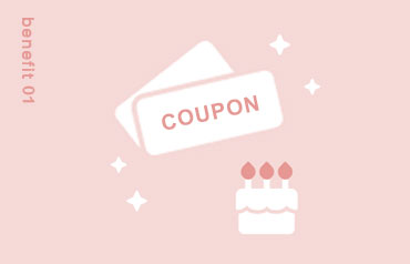 お誕生月やキャンペーン等のクーポンも会員様限定です。※お誕生月内のご登録も対象(カート内自動付与)。